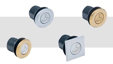 Plastic housing and metal flange and button cover with chrome, brass or satin finish