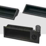 The durable and stylish recessed pull provides a convenient grip for the heavier door or drawer application. The two-piece recessed cup design grips the door panel to provide ample space for two-hand deep grip with full hand with minimal protrusion from the front of the panel. This black ABS body uses a two-piece design to provide a wide grip area with a clean, flush-mounted panel presentation. Simple one-hole mounting – the soft-surface slides that pass through the panel are connected with self-woven mounting screws from the back of the cup.