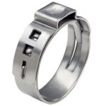 StepLess® (Stepless) Ear ClampsIt is produced in standard widths and thicknesses. The material sizes chosen for a particular application depend on the stress required to obtain adequate insulation or load. The clamp lug (clamping element) is tightened by bringing the lower oval corners of the clamp “ear” closer together, using tools designed or approved by Oetiker. The maximum diameter reduction is proportional to the open “ear” width (s). Outline: Push the hose onto the coupling material (eg nipple) to determine the correct clamp diameter then measure the outside diameter of the hose. Select a clamp whose diameter range average is slightly larger than the outer diameter of the hose. A clamp can be considered properly tightened only when the lug width (s) is reduced by at least 40% and the correct clamping force is applied for assembly.