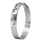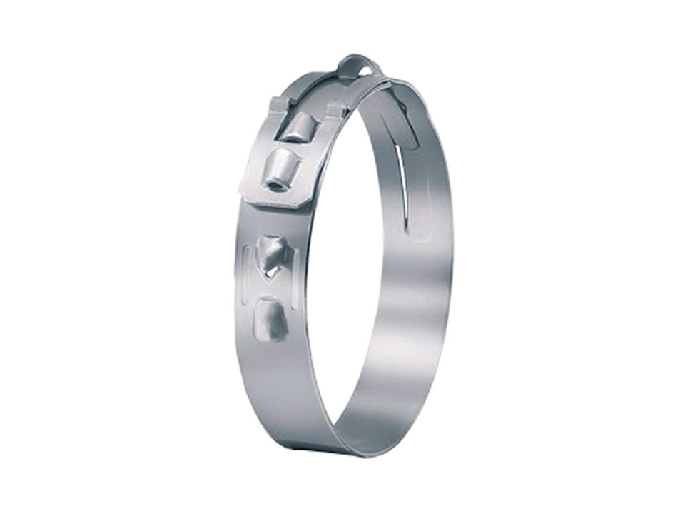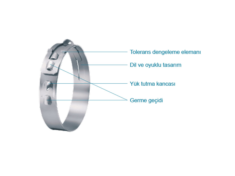 These clamps are tightened manually by a specially developed hand tool or by using pneumatic pliers when higher pieces are to be mounted. To tighten the clamp, the ends of the pincer jaws must be passed to the tensioning pass at the end of the overlap and the pass next to the load-bearing hook. With the operation of the tightening tool, the clamp diameter is reduced to the position where the tightening hook locking occurs. The structure of the tolerance-balanced StepLess® low-profile clamps is such that when the correct position is achieved, the inner contour of the tensioner gate at the end of the overlap is automatically locked to the load-bearing hook. Without balancing tolerance StepLess® low-profile cuffs, unlike these small differences in component tolerances during assembly and balancing to adapt to thermal expansion and contraction due to changes in the cap element has the property to absorb. As with other types of clamp, the sealing pressure under the clamp is a factor of the diameters and materials of the components being compressed. The sealing properties of these clamps depend mainly on the opposing forces formed in the soft material of the fixed parts and on the preloading of the tolerance balancing element.
